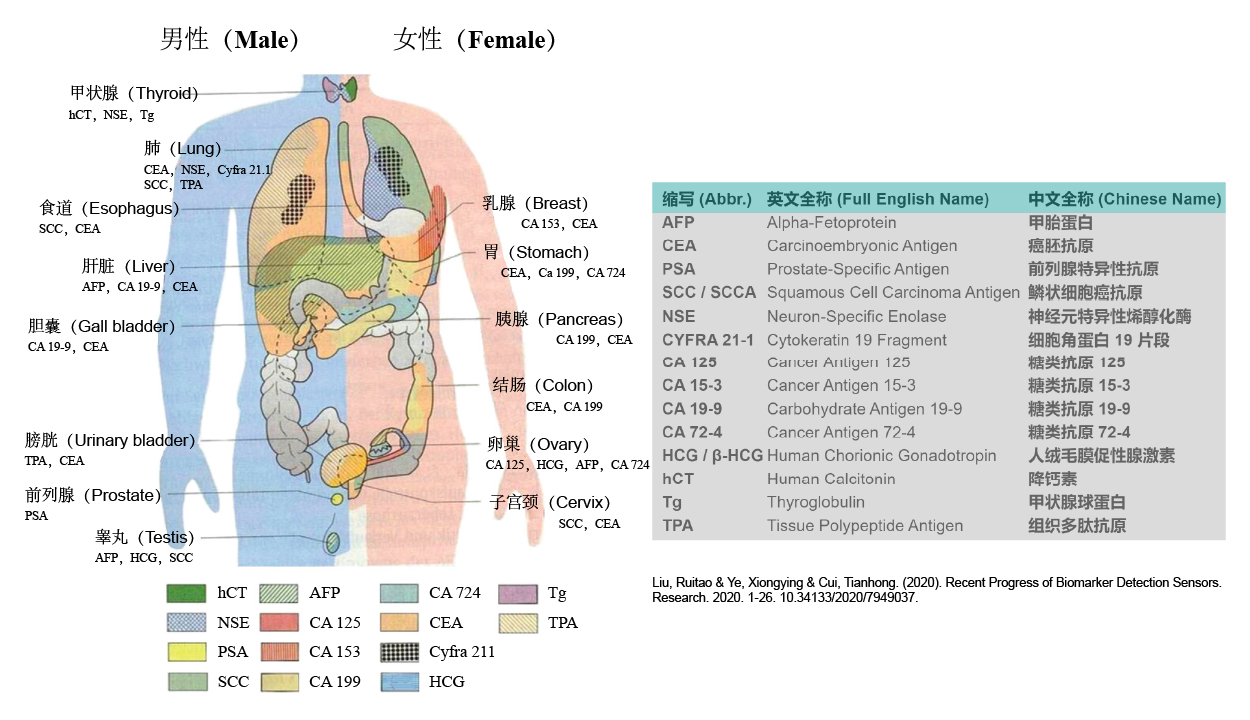 癌症的早期诊断和治疗一直是人类健康研究中的重要领域。当前已证明最有效的方法,就是关注肿瘤相关生物标志物检测,不断攻克在生物传感器方面的技术,比如基于纳米线等超材料的生物标志物传感器研发,有望突破在更复杂的检测环境中实现超高分辨率、灵敏度的检测极限,以期为早期诊断提供高效、实时且准确的生物信息,为人类的健康贡献力量[1]。